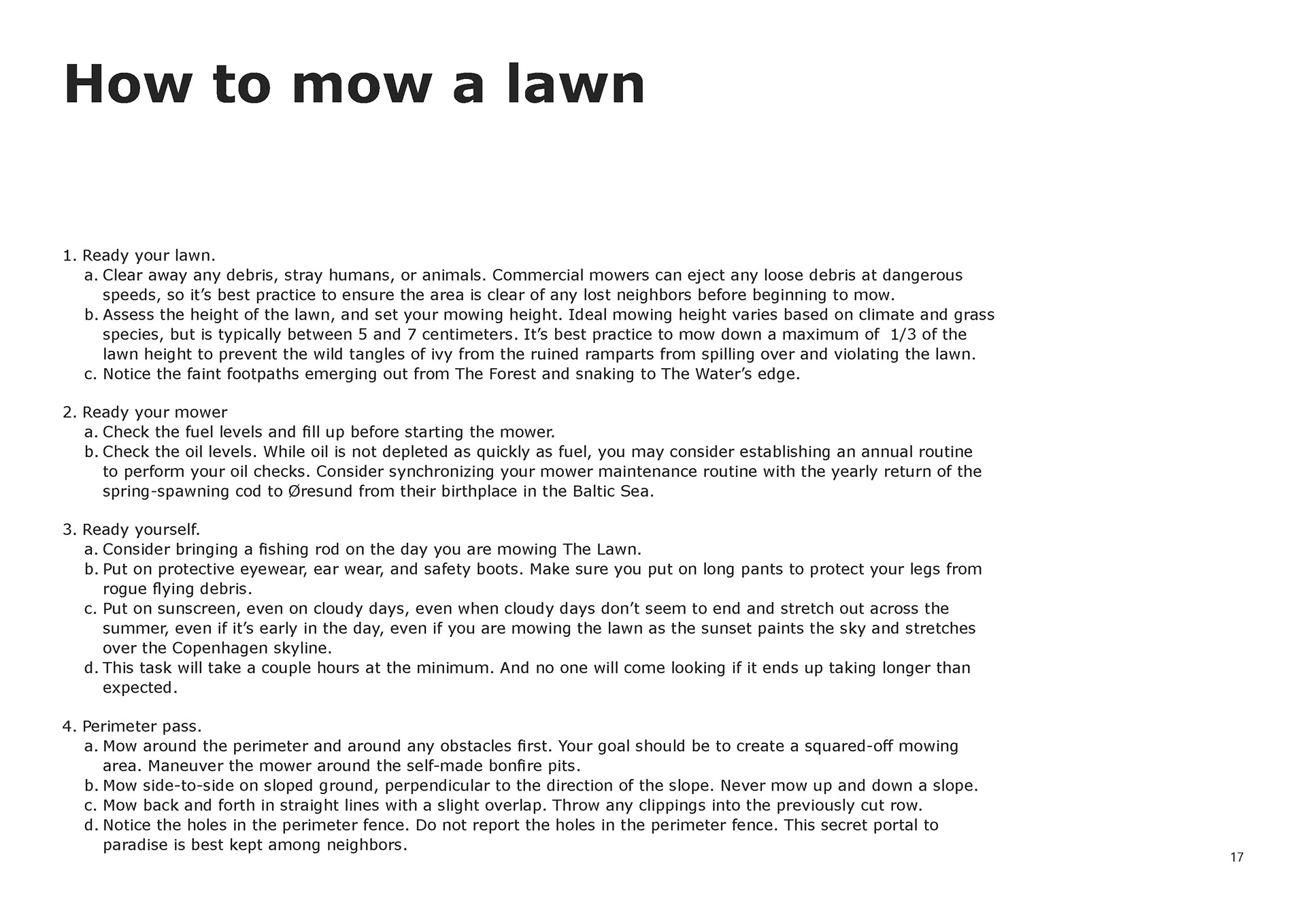 (Gallery) Part of the project process included transforming six hour-long interviews with neighbors around the site into a small folklore anthology of six fictional stories. Stories featured here embrace the formats of science fiction and poetry to reveal the character of specific places around the site - the houseboats, and the lawn. Illustrations by author.